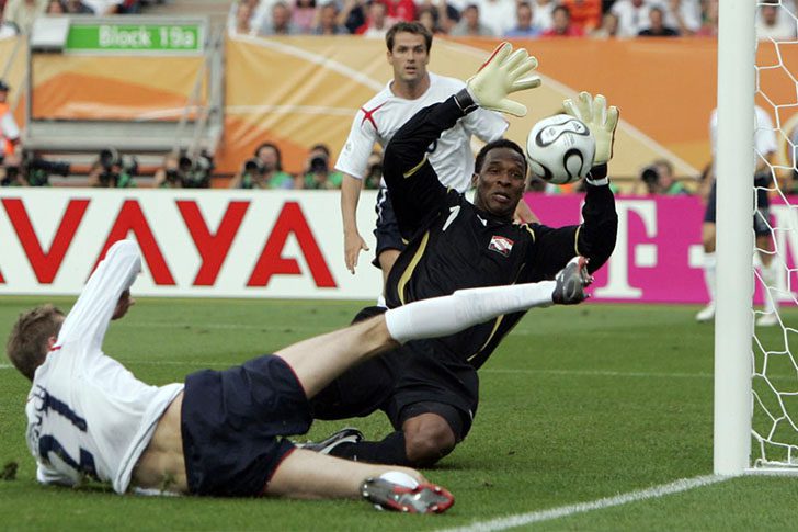 Shaka Hislop ist der letzte Torwart in unserer Rangliste der ältesten Spieler. Der am 22.02.1969 in London geborene Schlussmann war bei der einzigen WM 2006 in Deutschland, für die sich Trinidad & Tobago bislang qualifiziert hat, die Nummer eins im Tor. Er hatte somit zwei aktive Einsätze in der Vorrunde, bevor er im letzten Gruppenspiel seinem Ersatzmann Kelvin Jack das Feld überließ, da man zu diesem Zeitpunkt schon ausgeschieden war.