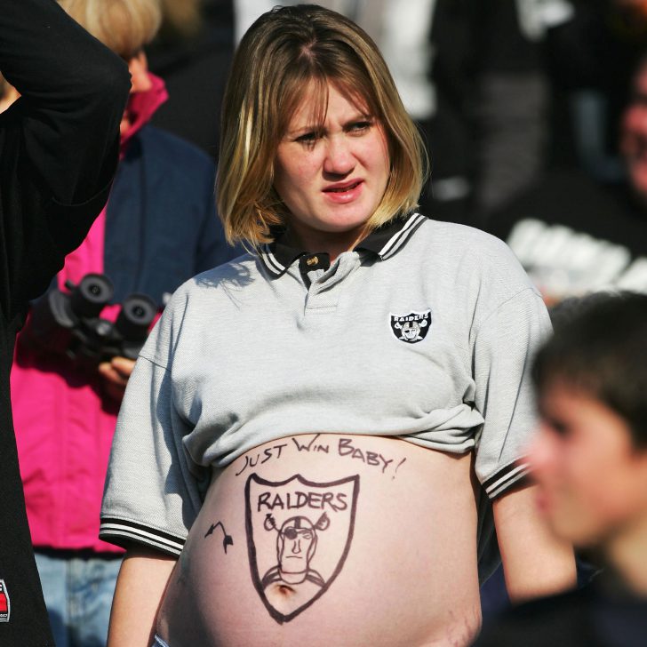 Die werdende Mutter stand auf dem Fußballplatz und feuerte die Oakland Raiders an, obwohl es schwierig für schwangere Frauen ist, längere Zeit in einer überfüllten Arena zu stehen. Doch die sportliche Leidenschaft ist dann umso größer und man möchte schließlich, dass das Baby in Zukunft ebenfalls ein wahrer Fan wird.