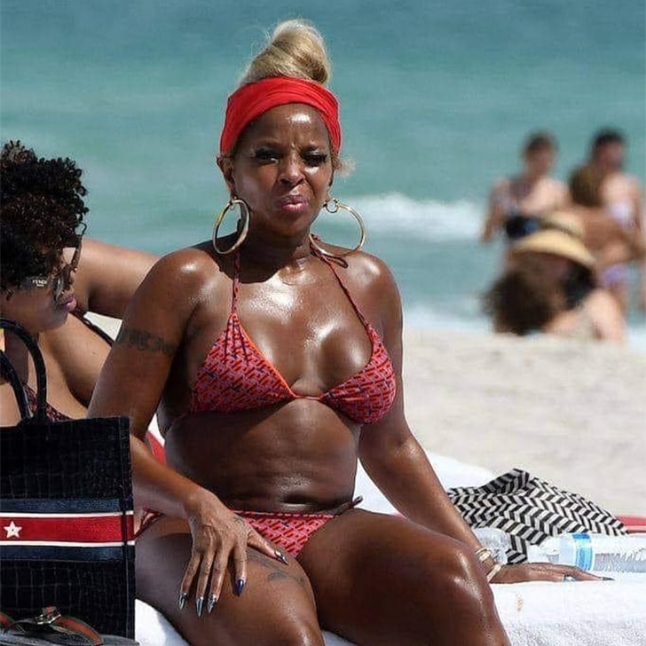 Mary J. Blige, the legendary singer-songwriter, is turning heads in a stunning red patterned bikini from Versace. The La Greca print, a classic Versace design, adds a touch of luxury to the traditional two-piece swimsuit. This Queen of Hip-Hop Soul is not only a musical icon but also a fashion inspiration.