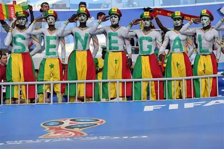 Fan group do Senegal Um grupo de fãs do Senegal se pintou com as letras do nome do país durante a partida contra a Colômbia e também usou bermudas e quepes militares hilários com as mesmas cores da bandeira nacional do país. Eles ficaram em fila para formar a palavra Senegal enquanto aclamavam e encorajavam […]