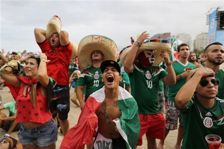 Por mi México Os enormes ‘sombreros’ estão presentes, e ponchos e mais ponchos além de milhares de bandeiras! Não sabemos exatamente o que está acontecendo, mas parece que este grupo animadíssimo de torcedores mexicanos está bebendo tequila e comemorando a vitória de seu país contra Camarões.