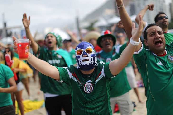 Outro grupo de torcedores mexicanos usou máscaras de luta livre em partida contra a Arábia. Uma máscara de luta livre “lucha libre” é sempre uma aposta segura para os fãs do México. Elegante, de alto impacto, fácil de calçar e tirar para fins de deslocamento.