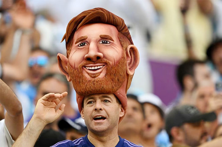 Este torcedor da Argentina colocou uma gigantesca máscara de Lionel Messi em seu boné. Messi na cabeça na Copa do Mundo do Qatar? E não é que deu isso mesmo? Com o genial Messi ‘a la cabeza’, a seleção argentina saiu vitoriosa na Copa do Mundo de 2022.