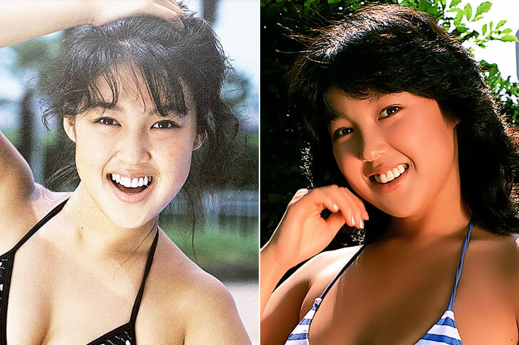 堀江 しのぶ(1965年生まれ) 1983年にクラリオンガールコンテストで受賞したことをきっかけに、アイドルとしてデビュー。健康的なスタイルでグラビアやテレビ番組のアシスタントとして活躍し、グラビアアイドルの先駆けの一人として知られています。ドラマ『毎度おさわがせします』などで女優としても活動しましたが、1988年にスキルス性胃がんのため、23歳という若さで亡くなりました。