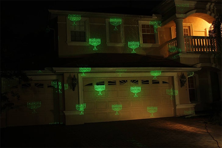 Elevate your décor game to dazzling new heights with the Hanukkah-themed Laser Light! Forget about the hassle of hanging lights or the fear of a candle-toppling cat. With a click, your house becomes a spectacular green laser light show, featuring dazzling menorahs.