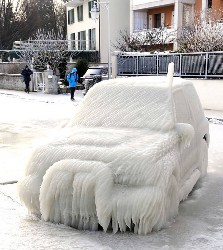 Ice-Sculpted Car with a Mustache In a winter neighborhood parking lot, a car has transformed into an unexpected artwork. Entirely wrapped in ice, it now resembles a sculpture, with the bumper looking like a mustache. This icy transformation likely occurred due to a combination of freezing temperatures, precipitation, and wind. When rain or sleet falls […]