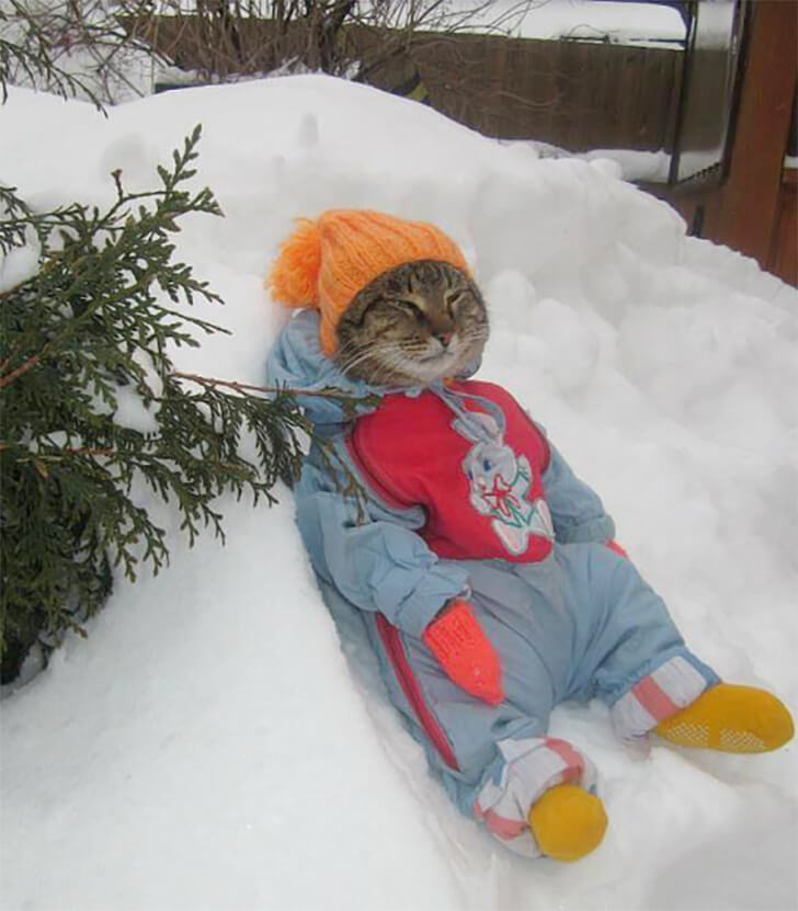 Chill Cat Lounging in the Snow A cat lounges on its back atop a tiny snow hill, eyes partially closed in contentment. Dressed in a blue onesie, orange bonnet, and yellow socks, this feline seems perfectly at ease. But do cats love snow? Generally, cats prefer warmth and comfort over cold environments. However, some cats […]
