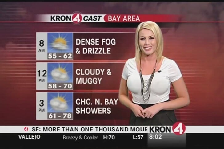 Verificar todos los detalles antes de salir al aire puede ser complicado. La meteoróloga Jacqueline Bennett, del canal KRON 4 en San Francisco, lo descubrió de primera mano el 17 de octubre de 2010. Ella eligió una blusa encantadora, pero no anticipó cómo el frío del estudio y las intensas luces la harían casi transparente.