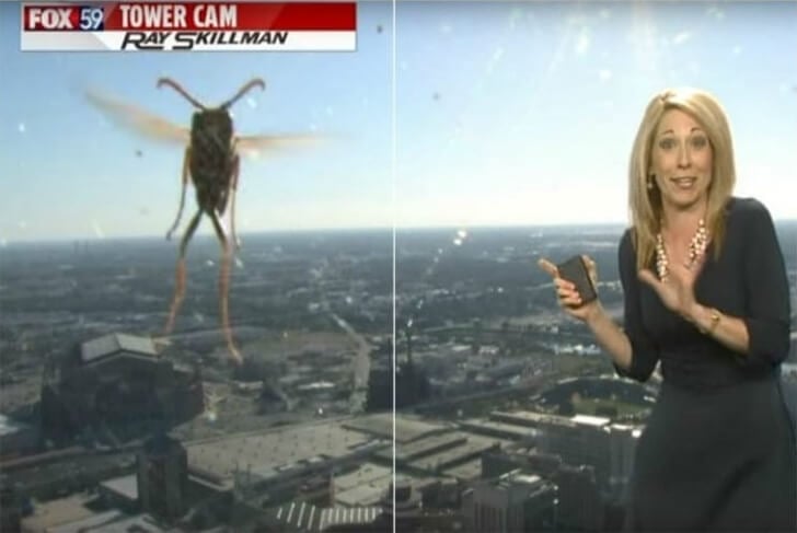 Jennifer Ketchmark, la meteoróloga de “Fox59”, se encontró con un inesperado desafío mientras presentaba su informe del clima. Mientras mostraba el cielo azul sobre Indianápolis, un avispón rojo decidió hacer una aparición no deseada al atacar la lente de la cámara. El inusual intruso causó un grito de terror y un abandono abrupto del segmento por parte de Ketchmark.