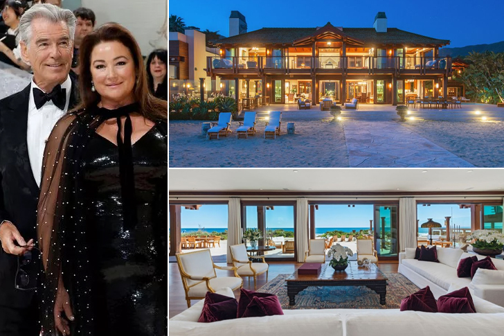 In 2020, Pierce Brosnan, the suave actor best known for his role as James Bond, and his wife, Keely Shaye, listed their Malibu beachfront masterpiece for $100 million. Inspired by their travels to Thailand, the estate, named Orchid House, spans approximately 12,500 square feet with five bedrooms, 14 bathrooms, and features that mirror a luxurious resort, including a spa, a saltwater pool, and a cinema.