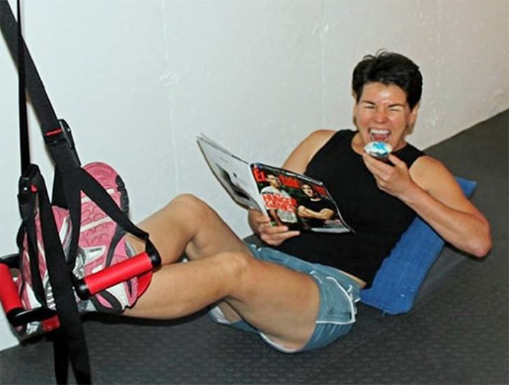 What a way to redefine gym time: lounging leisurely while indulging in a cupcake and flipping through Entertainment Weekly. The magazine features “Hunger Games” on the cover, and perhaps this person is taking the “Hunger” part literally, merging fitness with his love for pop culture and treats.