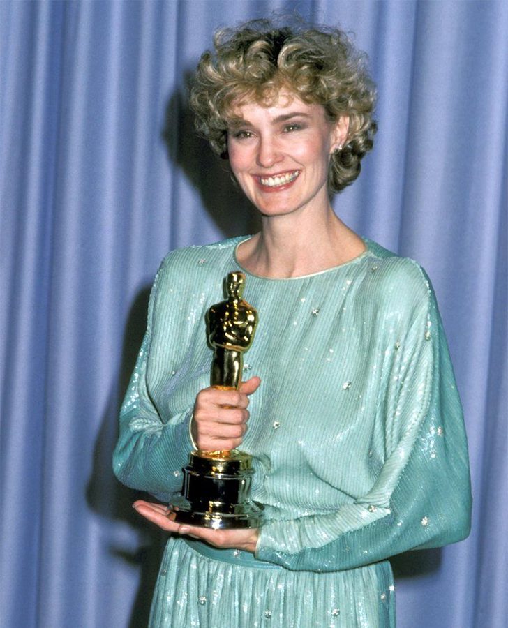 Seeing her efforts recognized with a flashy golden statuette, Lange looked stunning in her embellished blue dress. The only thing that tops her outfit? Her big, beautiful smile! After her success in “Tootsie,” Lange went on to work in movies such as “Blue Sky,” “Music Box,” and “Losing Isaiah.” More recently, she appeared in the Neil Jordan thriller “Marlowe.”