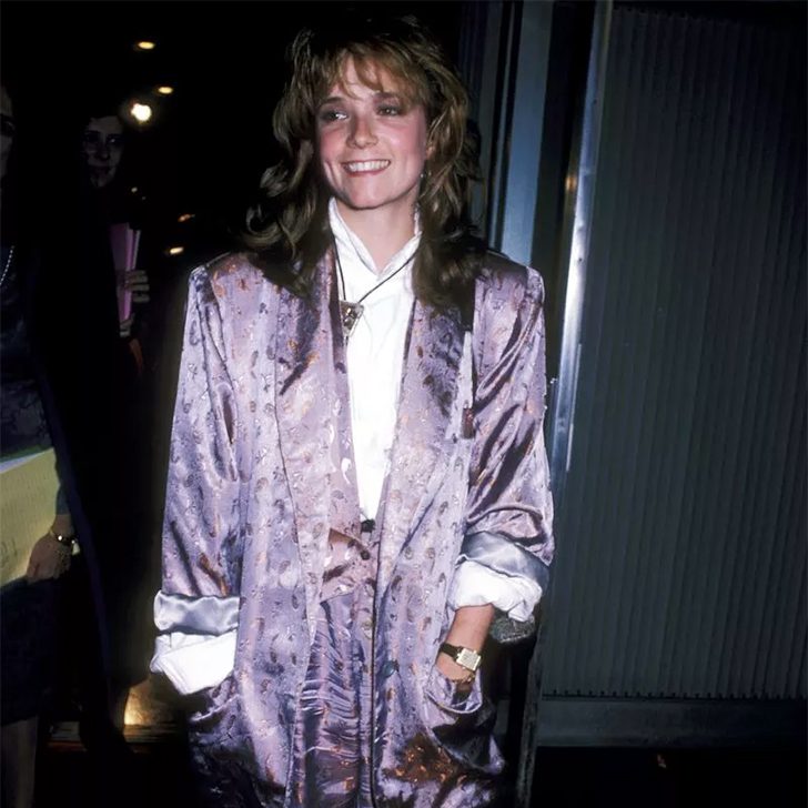 As one of the ultimate screen stars of the ’80s, Thompson knew just how to make a striking public appearance. In the photo, she is looking great with a long, purple silk jacket and triangle-shaped medallion. However, the most gorgeous thing about the way she looks is still her big smile!