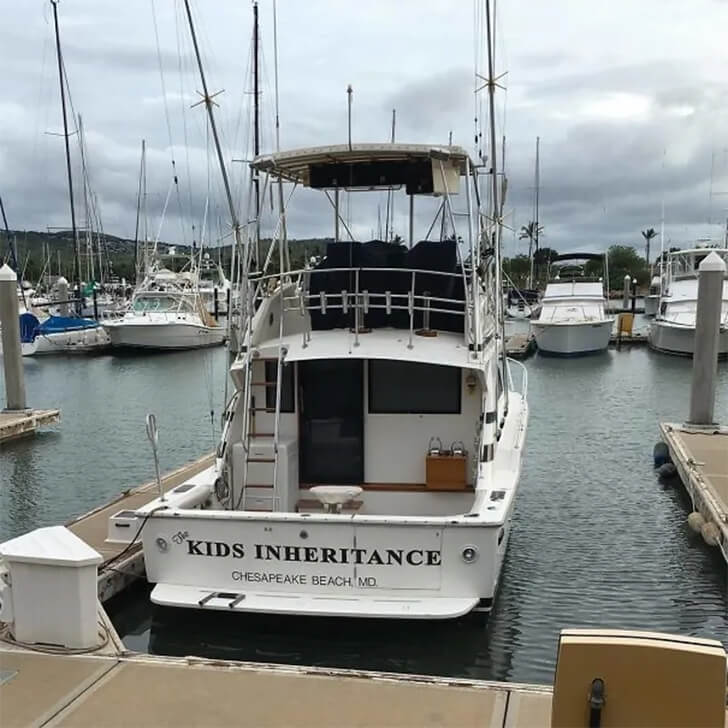 Nestled among other vessels at the marina, one boat stands out with its tongue-in-cheek inscription: “Kids Inheritance.” This humorous label suggests the owner playfully invested in nautical pleasures, perhaps at the expense of a more traditional legacy for his offspring.
