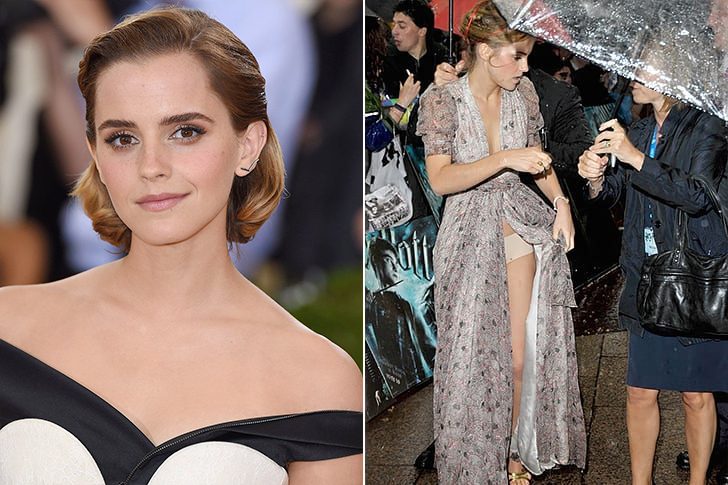 At a public event, Watson was having trouble with the pouring rain and ended up moving her dress to the side a little too much. The result? Her underwear was exposed and the paparazzi around surely made the most of the situation. Sadly for them, there’s nothing too scandalous to see here!