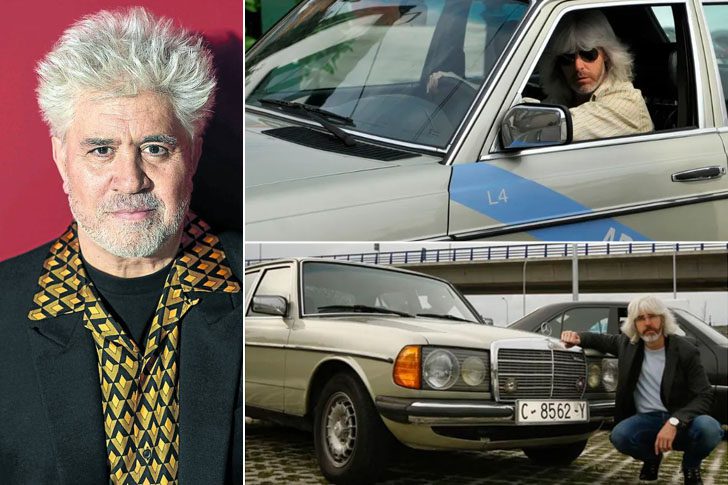 Pedro Almodóvar es un director de cine español que se educó en la época franquista. Igualmente, siempre fue un director que quebraba todas las reglas, sin límites, mostrando en sus películas la realidad LGBTI+ en una época en la que no se hablaba del tema públicamente. Es el director más conocido fuera de España pues han llegado varias de sus películas a Latinoamérica. Ama los automóviles Mercedes Benz y lo vemos en la foto con el modelo W123 verde, propiedad de Diethelm Lenze, un español que prestó sus automóviles para la filmación de la película Julieta, en la que aparecieron dos Mercedes Benz, que recreaban los años 80.