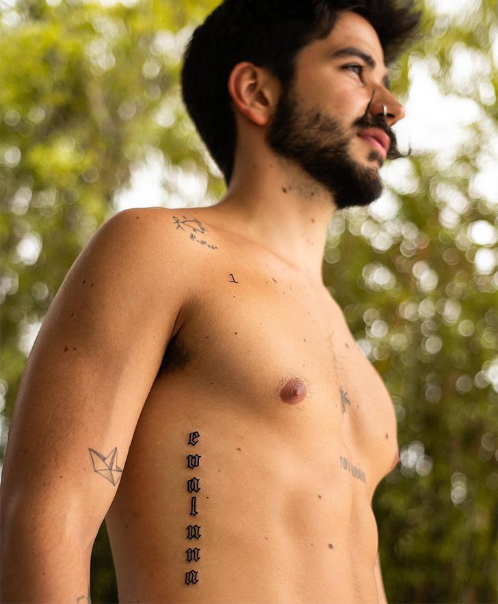 El exitoso cantante colombiano Camilo Echeverry está casado con la también cantante Evaluna Montaner y él demuestra su profundo amor por su esposa cada vez que tiene la oportunidad. El artista lleva tatuado el nombre de su pareja en las costillas entre tantos otros tatuajes que tiene en su cuerpo.