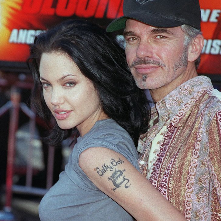 La estrella de Hollywood Angelina Jolie estuvo en pareja con el también actor Billy Bob Thornton. Ellos se conocieron en el año 1999 y un año más tarde decidieron casarse. En honor a esa unión la actriz se tatuó un dragón con el nombre de su entonces marido, pero tres años más tarde la relación acabó. Años más tarde Angelina decidió tapar su tatuaje con las coordenadas del lugar de nacimiento de sus hijos y de su entonces esposo, Brad Pitt.
