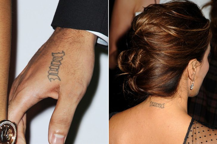 La talentosa actriz Eva Longoria estuvo en pareja por muchos años con el basquetbolista Tony Parker. En el año 2007 Eva y Tony se casaron y la actriz quiso celebrarlo tatuándose una la palabra nueve (el número de Tony) en la nuca, la fecha de su boda en su muñeca y las iniciales de su marido en un lugar más íntimo. Lamentablemente, Eva y Tony se separaron en el año 2011 y la actriz se borró cada uno de sus tatuajes.