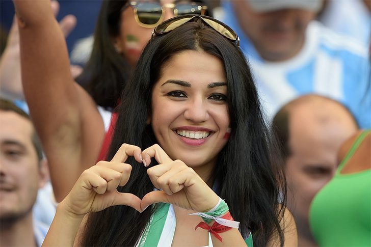 While Iran failed to win a single game in the 2014 FIFA World Cup, they did land a historic victory in the subsequent 2018 edition. Meanwhile, gorgeous Iranian supporters like the woman in the picture were more than happy to let the world know Iran’s all about love.