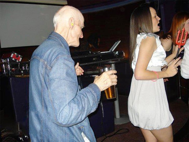 It looks like age truly is just a number for this older man, as he was ready to show his juniors how they used to party back in the ’60s. Perhaps more interesting is that he wore his earbuds, which enhance his hearing ability, to such a noisy place. That said, he does look pretty sharp in that denim jacket.
