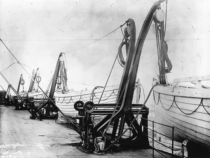 Questa foto mostra le scialuppe di salvataggio: visibilmente sono meno impressionanti rispetto l’imponenza della nave stessa ma certamente esse rappresentano un elemento di non trascurabile importanza dal momento che hanno una funzione emergenziale di salvataggio. Le scialuppe sono presenti anche su navi di dimensioni inferiori per consentire il salvataggio dell’equipaggio in casi di pericolo. Sembra incredibile ma proprio su una nave come il Titanic non venne considerata l’importanza delle scialuppe: esse infatti erano sufficienti per salvare 1178 persone su un totale di 2400 persone a bordo. Praticamente un numero elevato di morti annunciati.