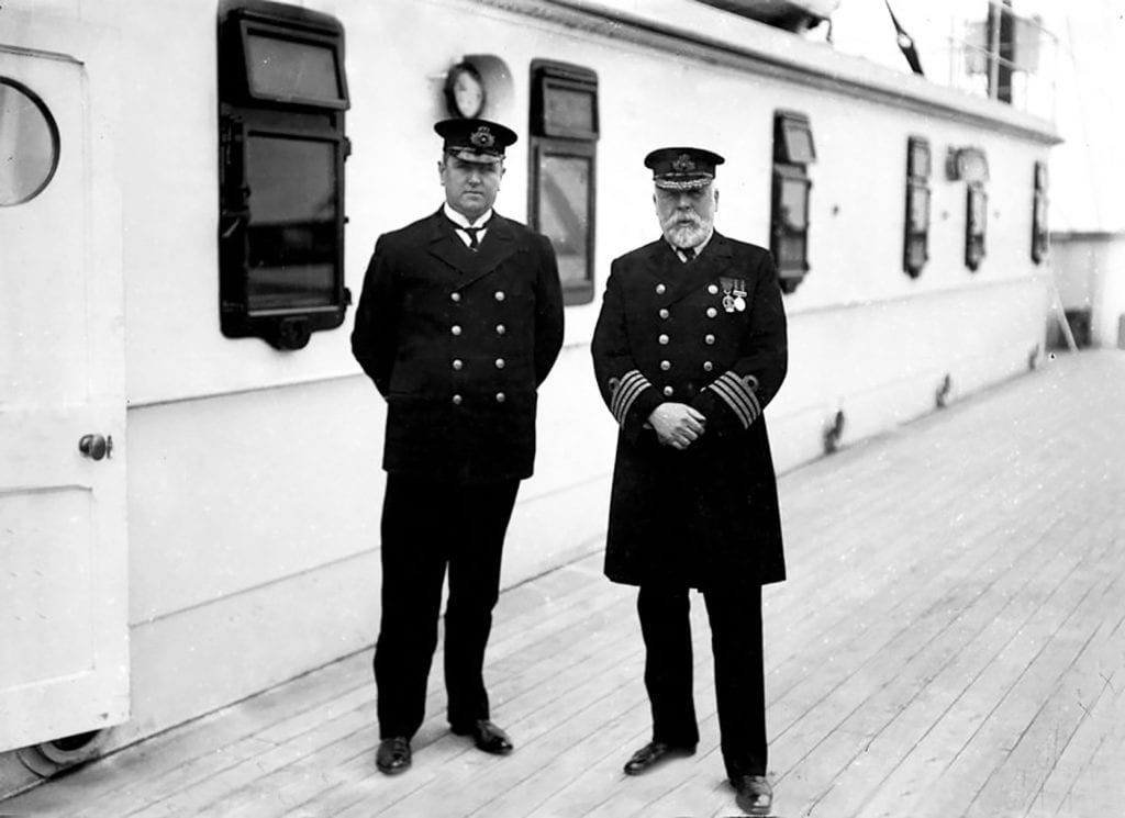 In questa foto vediamo il capitano Smith e il suo vice, alla sua sinistra, il commissario di bordo Hugh Walter McElroy. L’autore di questo storico scatto fu il reverendo FM Browne, che sali sulla nave solo per scattare la foto ricordo e poi scese prima che salpasse. Il Capitani Smith e il suo vice McElroy perirono a bordo, senza mai aver abbandonato la nave, come vuole il codice di onore della marina. Il capitano infatti può lasciare la nave solo dopo essersi assicurato che nessuno sia rimasto a bordo. Uomini coraggiosi, che hanno dato la loro vita per salvarne altre.