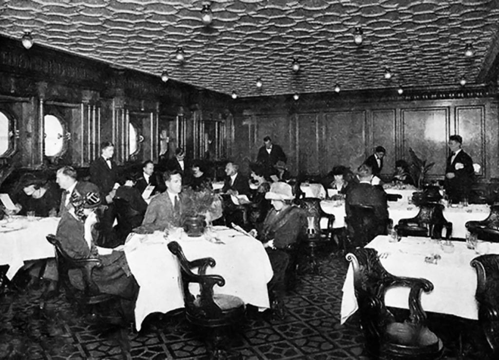 IL RISTORANTE DI BORDO Questa foto ritrae la sala da pranzo più grande del Titanic, dove i passeggeri più abbienti si riunivano per cena, ben vestiti e ingioiellati di fino. I passeggeri di seconda e terza classe consumavano i loro pasti nelle loro cabine oppure sul ponte, all’aperto. C’erano tantissimi cuochi e camerieri a bordo […]