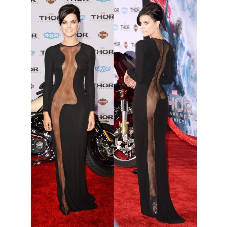 Dazzling on the red carpet for the premiere of “Thor: The Dark World,” Jaimie Alexander left jaws dropping in a daring black Azzaro gown. The risqué dress, designed in 2014, featured strategic sheer panels that artfully balanced sensuality and sophistication. Jaimie, a talented American actress known as Lady Sif in the Marvel Cinematic Universe, is celebrated for her powerful and empowering performances.