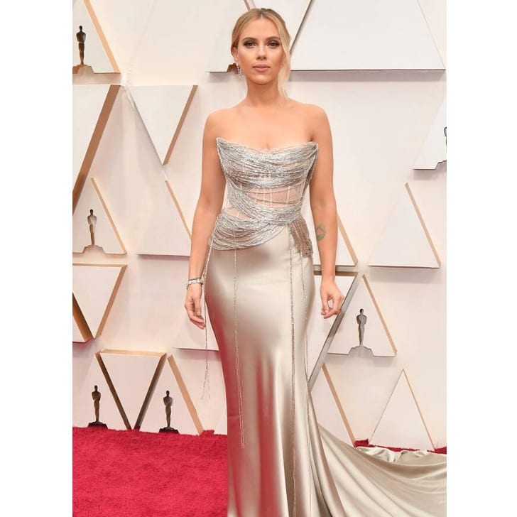 With a double nomination and a double dose of enchantment, Scarlett Johansson made a grand entrance onto the red carpet of the 2020 Oscars, and she was not just a mere contender but a breathtaking embodiment of vintage Hollywood glamour. Her Oscar de la Renta masterpiece, crafted from pewter silk that clung to her like liquid silver, evoked a sense of nostalgia for eras long gone.