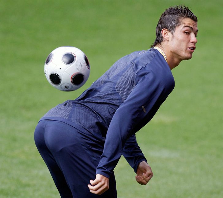 Cristiano Ronaldo proves he can handle the football as well with his backside as he does with his legs—and occasionally his head. Ronaldo is arguably the most-known footballer in the world as he has a whopping 450 million followers on Instagram. The Portuguese footballer is known for his career at Manchester United, Real Madrid, and Juventus.