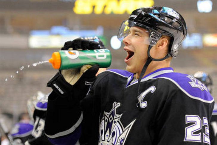 Dustin Brown might have led the Los Angeles Kings to two Stanley Cup championships but even he is prone to making silly blunders. The right-wing position hockey player seemed to be disoriented in this moment and held up the wrong end of his bottle to his mouth. The result was his water spilling out on the opposite side.