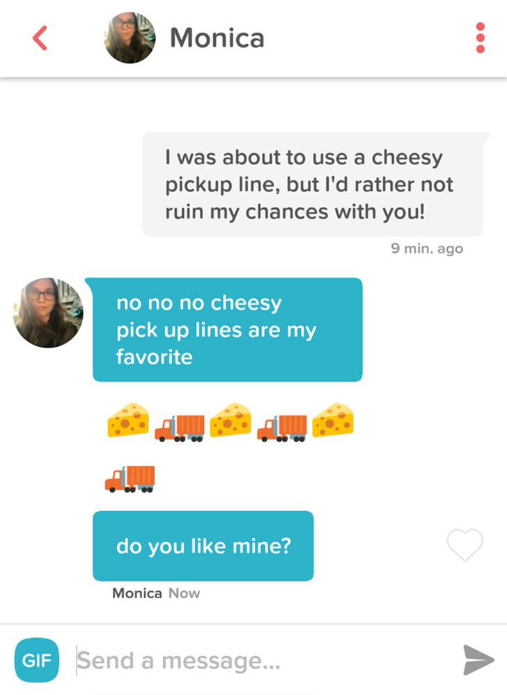 Cheesy lines have saved quite a number of people on Tinder. However, they aren’t always welcome, so it’s understandable that this Tinder user thought his match was averse to them. Thankfully, she wasn’t, and they matched happily ever after!