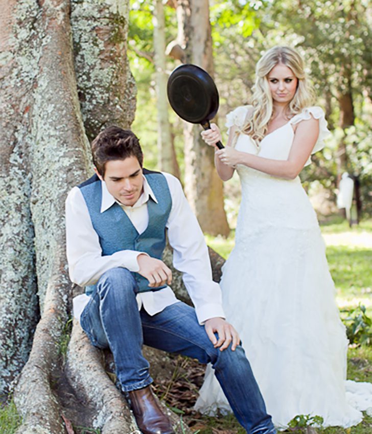 Você leitor, já tomou uma panelada na cabeça? Deve doer demais. Fico imaginando esse noivo levar essa panelada na cabeça por qualquer deslize. Isso não seria muito agradável.Essa noiva espera que ele se comporte e não a decepcione para que nada aconteça a esse pobrezinho. Vamos torcer para que ele seja um excelente marido e que ela use essa panela para fazer uma comida bem deliciosa.