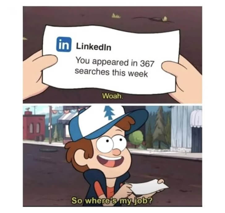 Dieser kleine Comic ist so real, er könnte unsere Biografie sein! LinkedIn mit seinen aufgeblasenen Ego-Boosts ist wie das Tinder der Arbeitswelt – viele Matches, null Dates. Da fühlst du dich für 5 Sekunden wie der heiße Scheiß, nur um dann festzustellen, dass dein Kontostand immer noch aussieht wie der Pegel der Elbe im Hochsommer.