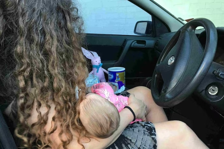 She nursed her baby in this private space with only the radio’s soft melody for company. What was planned as a joyful family dinner shifted to a solitary moment of motherhood in the parking lot, separated from her family’s laughter and distant from the celebration that was meant to mark a memorable evening.